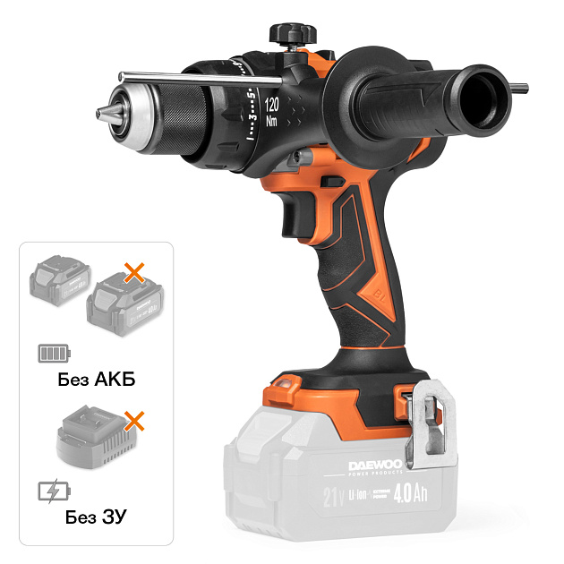 Модель совместима со всеми аккумуляторными инструментами и батареями DAEWOO линейки 21В.