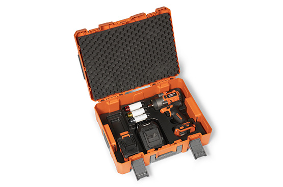 Кейс выполнен из прочного пластика в виде систейнера с замками, обеспечивающими быструю и надежную установку кейсов один над другим, что облегчает транспортировку и способствует экономии пространства для хранения.